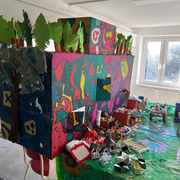 Über mehrere Wochen hinweg konnten die Kinder frei entscheiden, wie ihre Stadt aussehen soll und welche Werte dort wichtig sind. Sie planten Straßen und Plätze, gestalteten Häuser, Parks und Treffpunkte – und dachten dabei über Themen wie Solidarität, Vielfalt, Gerechtigkeit und Teilhabe nach. Mit Farben, Holz, Pappe, Stoffen und vielen anderen Materialien entstanden Bauwerke und Kunstwerke, die gemeinsam eine lebendige, kreative Stadt ergeben.